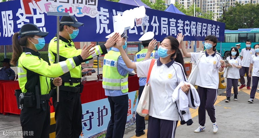 ▲高考期间,公安、交警、铁骑等部门一丝不苟地做好各个考点的安保工作