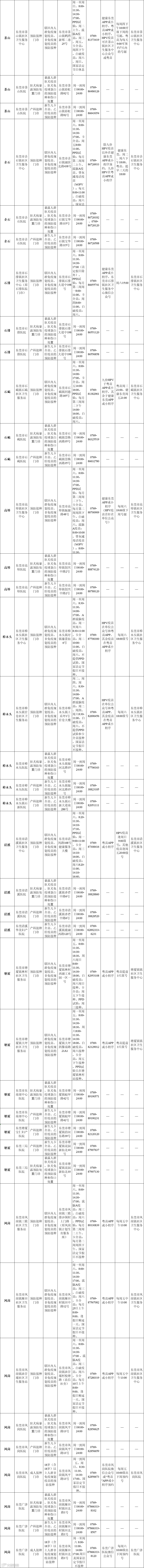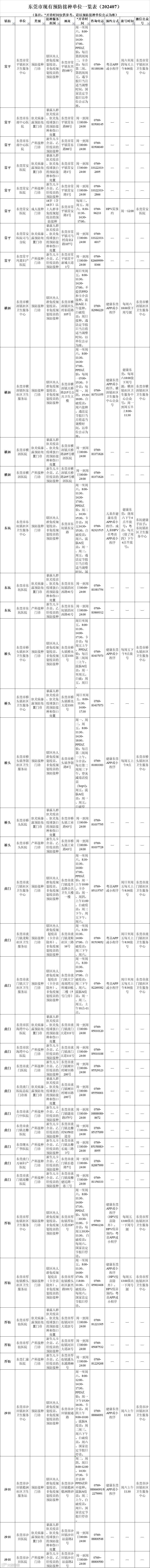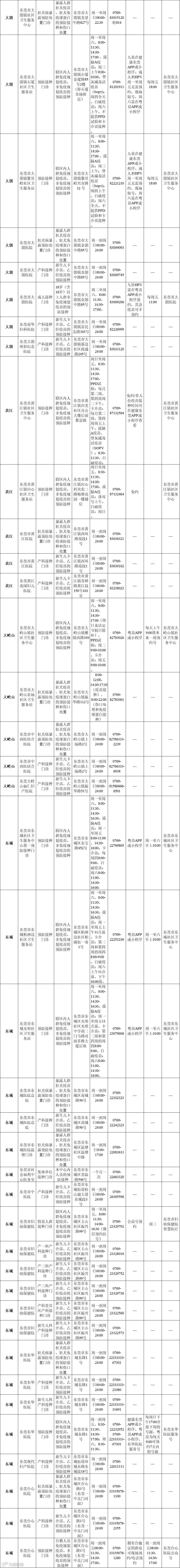 全市预防接种门诊信息
