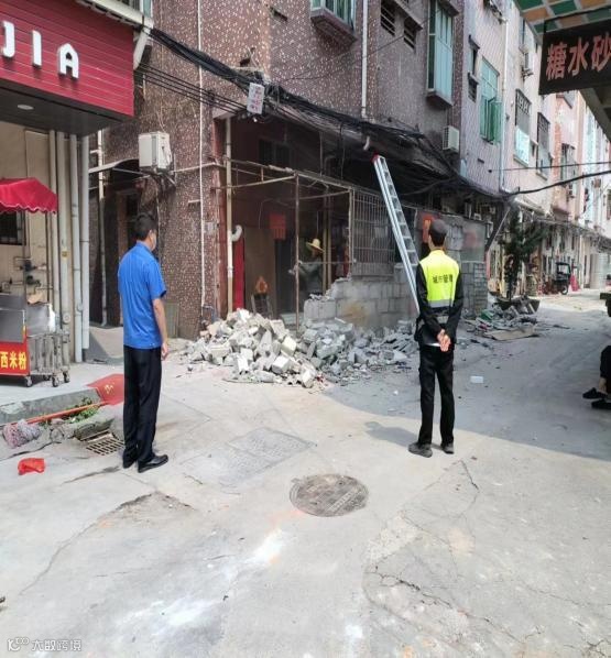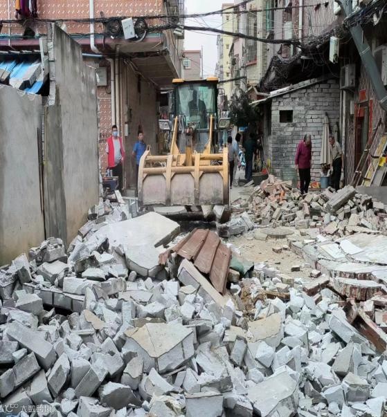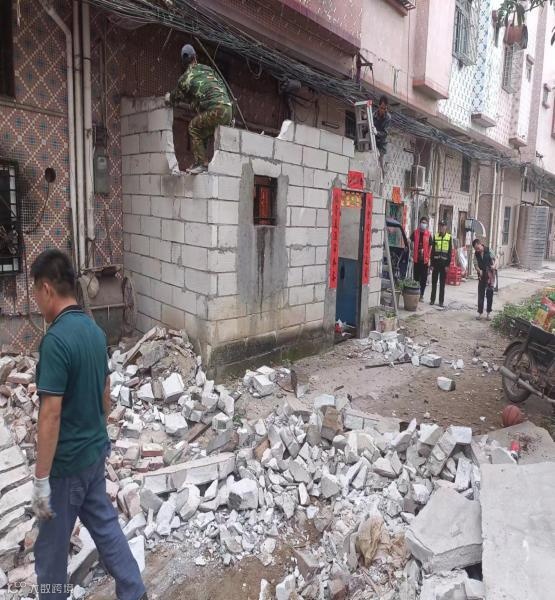 桥头镇城管分局相关工作人员、东江村“两委”干部以及东江村工作人员等共约20人参与此次活动。本次“洁净城市活动日”活动重点对东江村公共空间的杂物乱堆放、乱搭建等“六乱”现象进行集中整治。相关工作人员首先在将要拆除的违建物外围拉起一道警戒线,及时疏导过路的群众和商户。接着对东江村北五街、东江村市场附近的乱搭建、乱堆放建筑物进行清拆整治,并及时将产生的垃圾清理运走,确保周边环境干净整洁。行动中,共清拆乱搭建10 宗,清理面积约900平方米;清理屋前屋后乱堆放5 宗、清理各类垃圾约6.5吨。