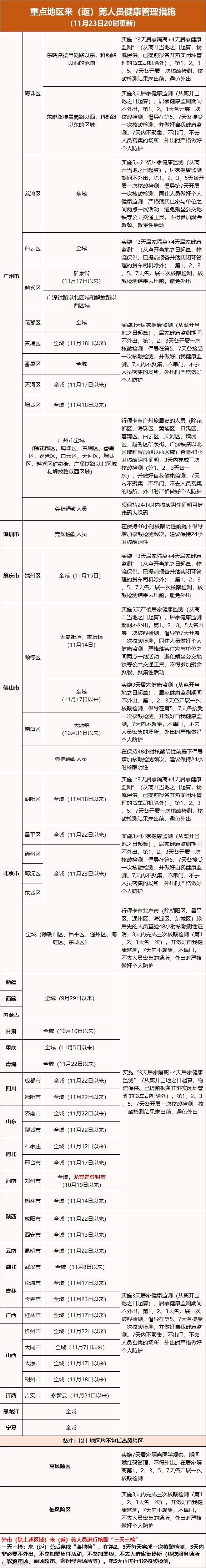 详情请查看“东莞疾控”微信号每日发布的《东莞疾控最新提醒》涉及地区的管理措施。