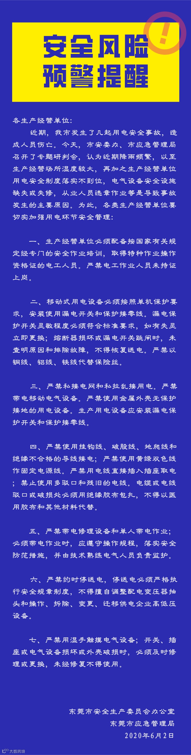 生产用电安全风险预警!