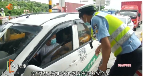 “后面的乘客没有系安全带,违反了《中华人民共和国道路交通安全法》,驾驶员要罚款200元。”