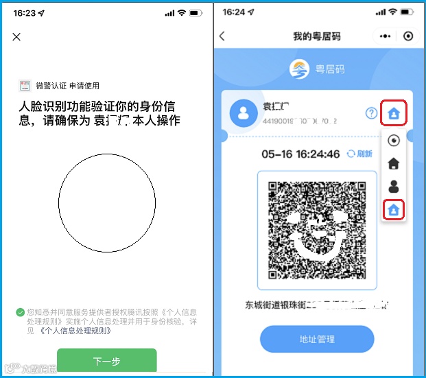 点击“粤居码”——“地址管理”——成员信息点击“新增成员”,进行微警认证后,可以为16周岁以下或60周岁以上的家人代为领取“粤居码”,家庭成员可以代为家人亮码,享受相应服务便利。