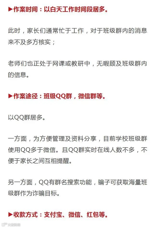 冒充家长申请入群,潜伏在群内观察老师的活动规律,利用老师上课或者不在线的时间差实施诈骗。