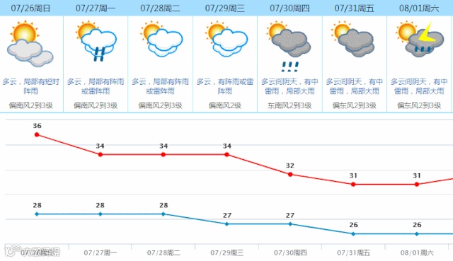 气象部门表示,下周开始副热带高压有所北抬,我市天气将趋于不稳定。云量会增多,雷雨也趋于明显。最重要的是,我市高温天气会得到明显缓解。预计到下周中后期,最高气温将会降到31到32度左右。