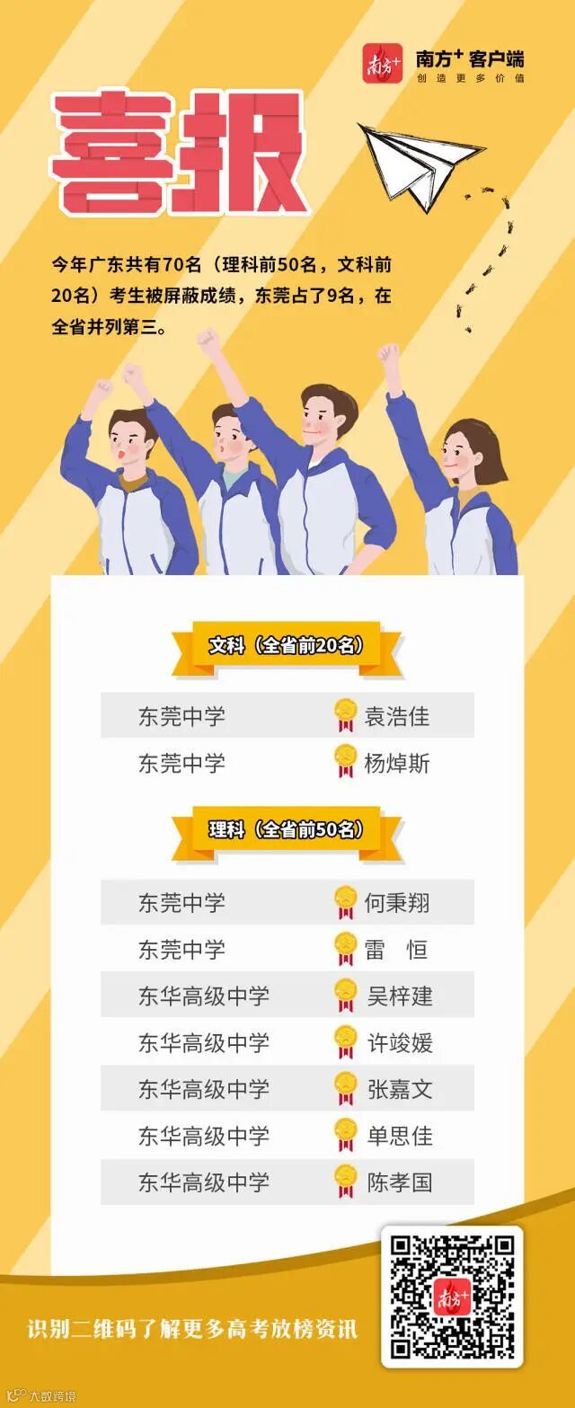 记者了解到,东莞中学理科全省前50名(屏蔽成绩)2人,何秉翔和雷恒。文科全省前20名(屏蔽成绩)2人,杨焯斯和袁浩佳。理科省前75名4人,文科省前30名3人。