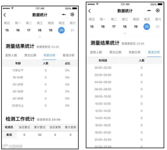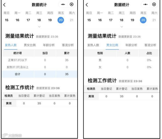 4)查看数据:公共场所检测员进入“体温检测”页面,点击“数据统计”即可查看检测数据。