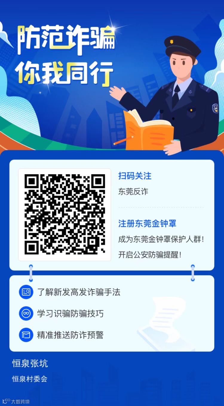 各位恒泉辖区居民,如果仍未注册反诈金钟罩的,请关注!注册一下!经实践证明,已经预警了多起的诈骗信息,宁可备而不用,也好过被骗了才后悔!