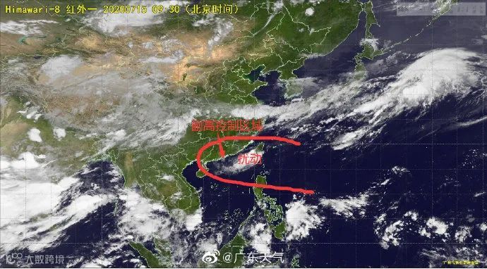 前些天海上的那个扰动,虽说没给广东带来直接影响,但是间接影响可不小啊,看起来柔柔弱弱,空调外机吹得却如此猛!所以强盛副高+扰动外围下沉,东部出现了极端高温,比如14日的大埔高温。