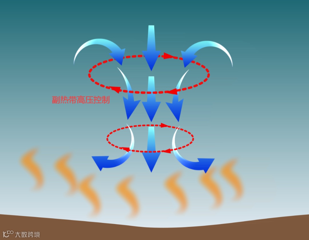 副高内部盛行下沉气流,所以受副热带高压控制的区域,高温是其突出特点,东部就牢牢地被副高控制了!
