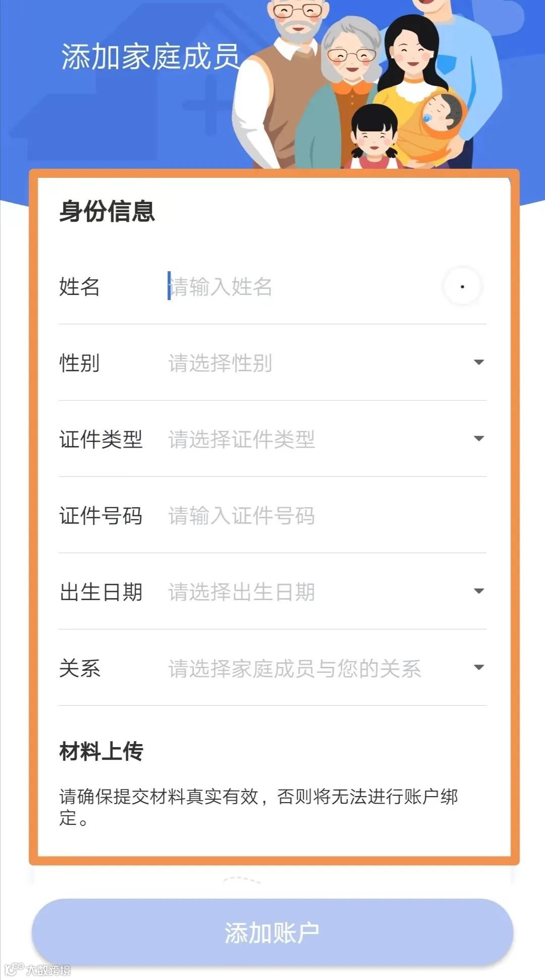 如果您添加的家庭成员小于16周岁,直接点击【添加账户】按钮即可完成账户关联。