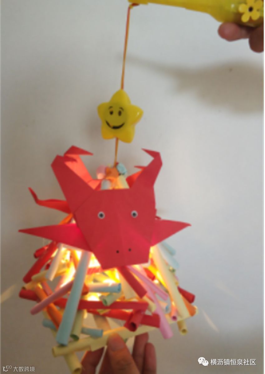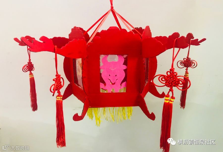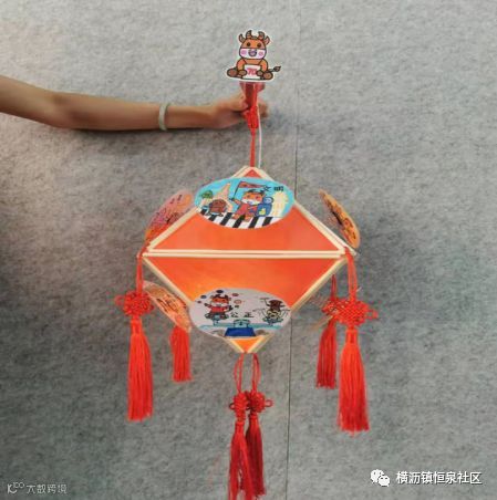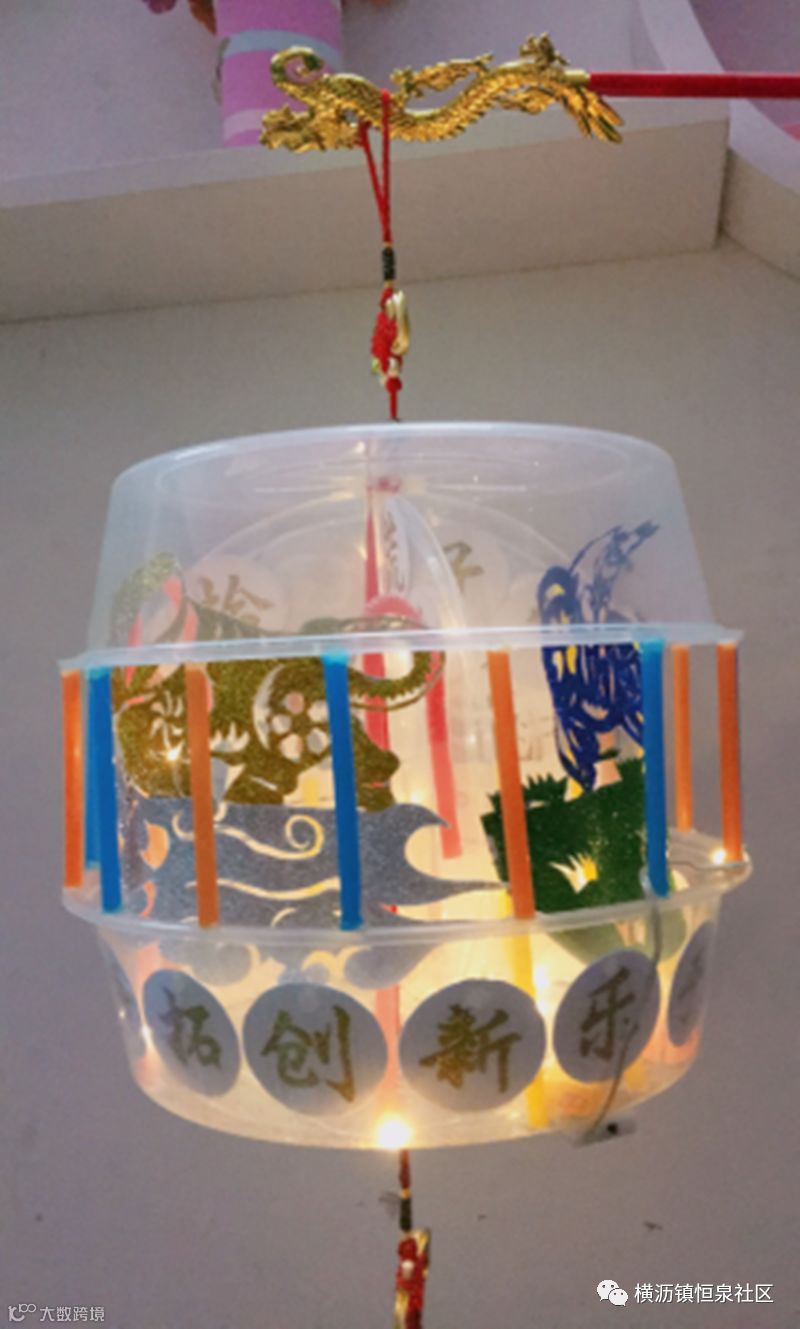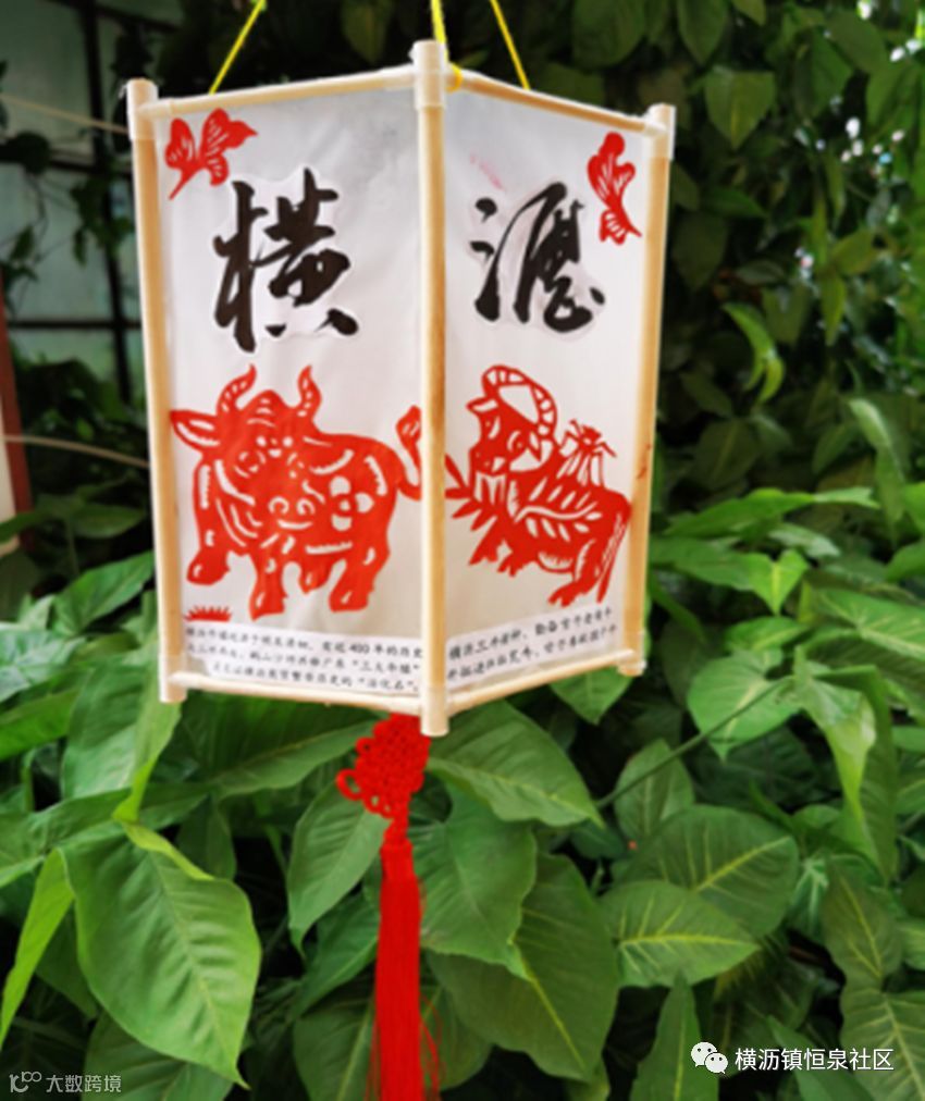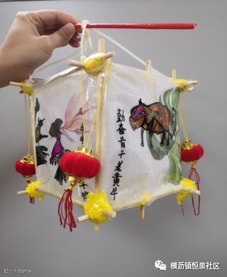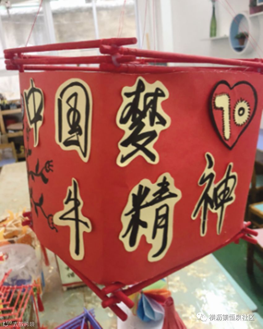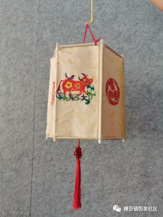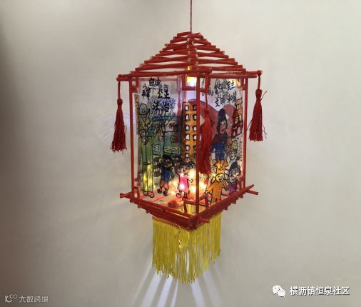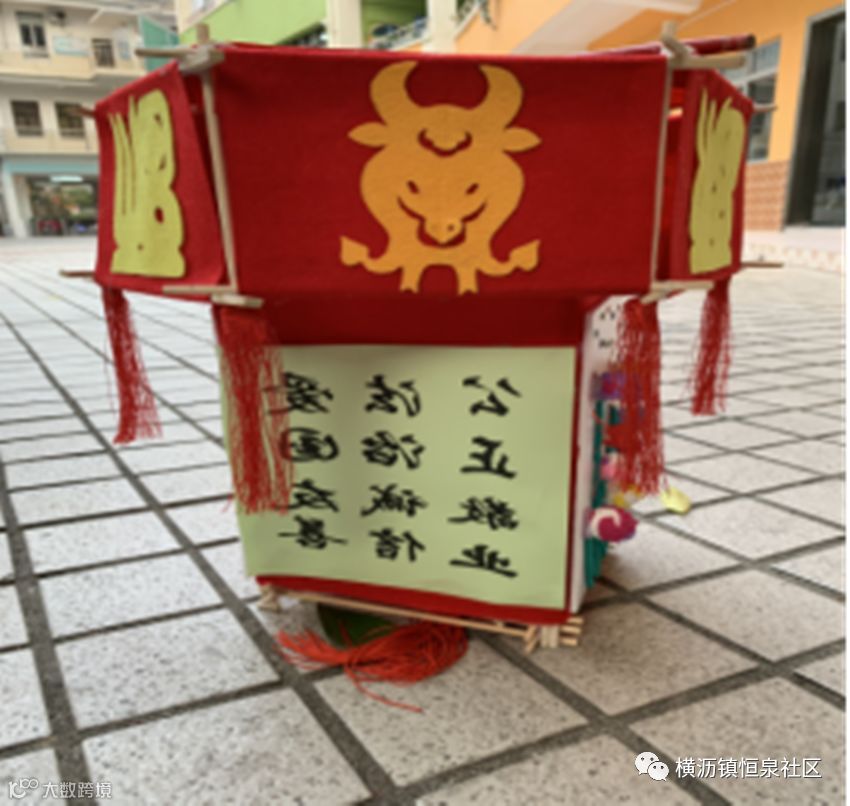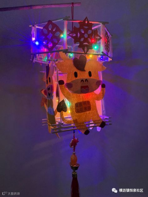 牛是我们镇的特色,灯笼制作用了环保的材料筷子,四周围以绘画的形式,创作了4幅有关百年牛墟以及中国的风采。