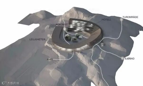 由著名建筑设计事务所Snøhetta 设计的罗弗敦歌剧院酒店外观酷似一条蛇,在山顶上转了一圈,项目占地11000平方英尺,完成后将会有公寓、酒店、水疗中心。露天剧场等。在僻静的山顶上,如此原始的酒店设计简直就是一个天堂。