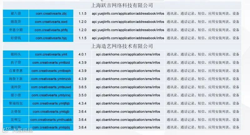 本次评测还发现,个别企业涉嫌开发多款App上传用户个人信息,包括上海跃吉网络科技有限公司、上海造艺网络有限公司、成都飞言网络科技有限公司。