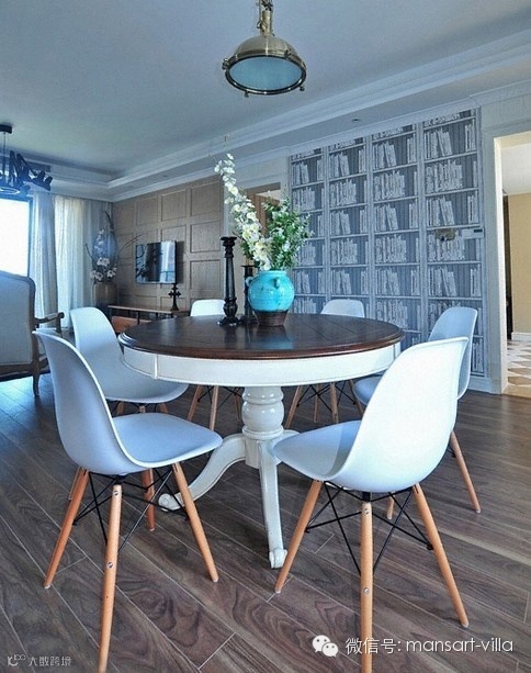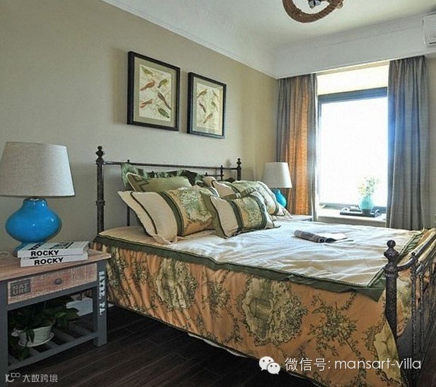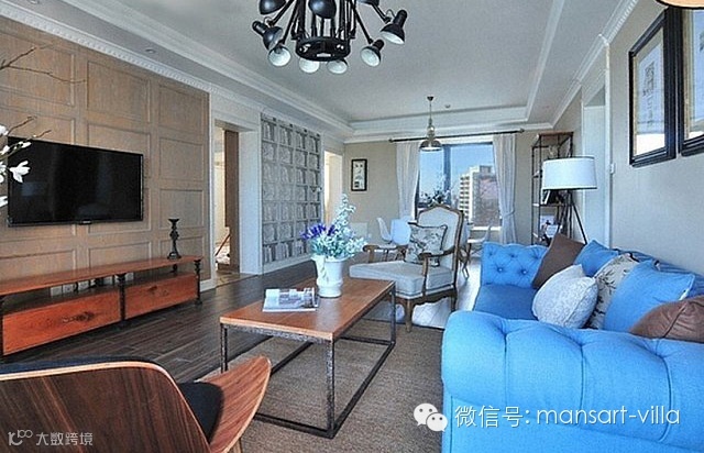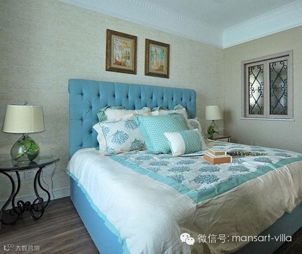 大户型的空间开放式的设计,160平美式三居设计,在简洁的硬装下搭配适当的软装让整个家清爽宜人。客厅与餐厅开放式的设计更显得空间的宽敞,美式风格的家居设计很有个性,时尚美观。淡蓝色的布艺沙发装饰画修饰的背景墙。宽敞的餐厅简单大气,宁静舒适,个性的家私很抢眼。主卧室设计独立的主卫,淡蓝色的布艺软床时尚温馨。