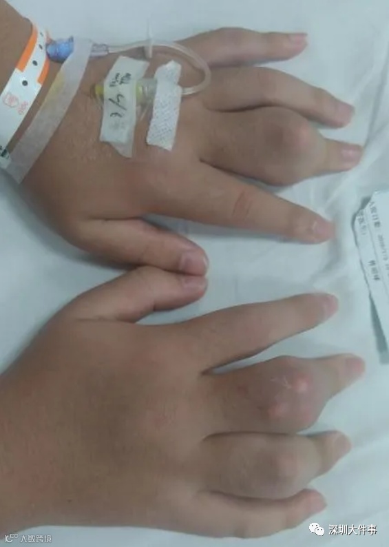 长期喝奶茶导致了痛风发作和痛风石形成,小海发作的时候疼得嗷嗷叫,无法走路,更令人震惊的是,手脚关节上长满了一块块白色的“钻石”。