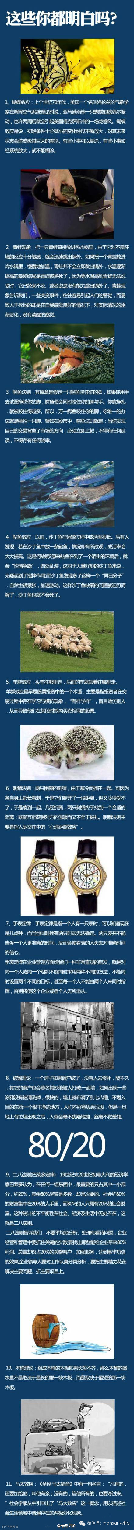 蝴蝶效应、青蛙现象、鳄鱼法则、鲇鱼效应、羊群效应、刺猬法则、手表定律、破窗理论、二八定律、木桶理论、马太效应,这些你都明白吗?你在用吗?