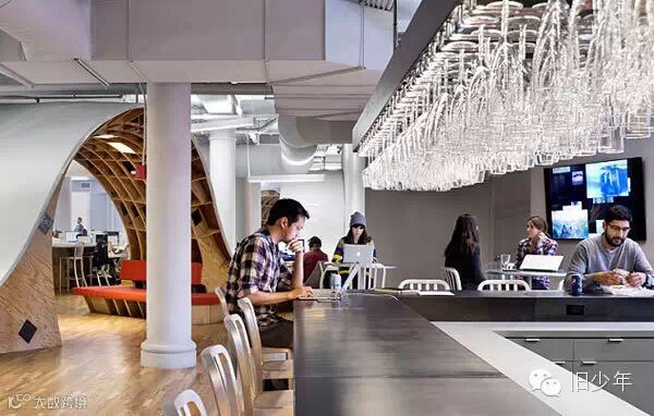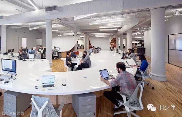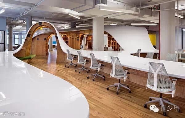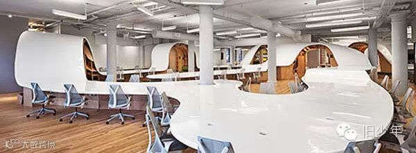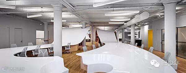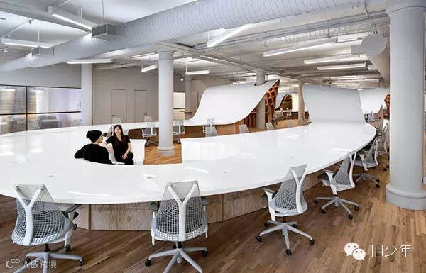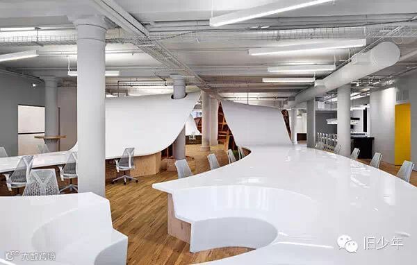 在这个办公室的设计者Clive Wilkinson眼中,整张桌子更像一根电线,串联起公司所有员工。