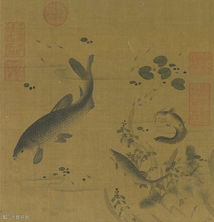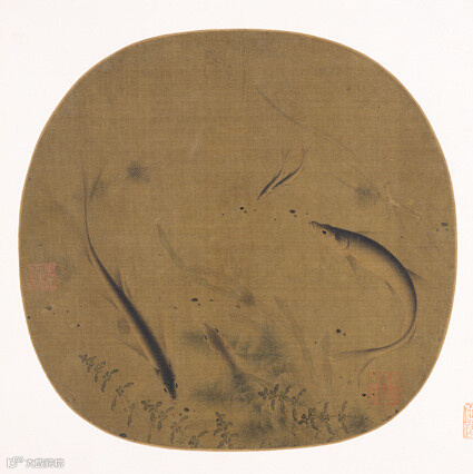 群鱼戏藻图页 宋,纨扇页,绢本
