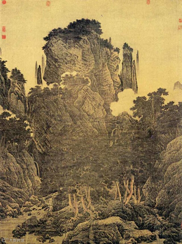 到李唐的「万壑松风」,山却像毛笔、手指一样细。那山峰像梦境,是非写实的山水,他从范宽的写实主义,转成浪漫主义,也是北宋跨越南宋的重要桥梁,他带动南宋画的留白、文人诗意。「万壑松风」是他总结北宋的一幅画。