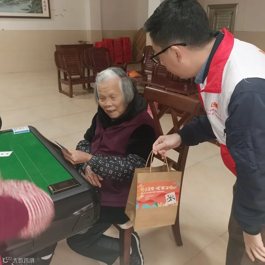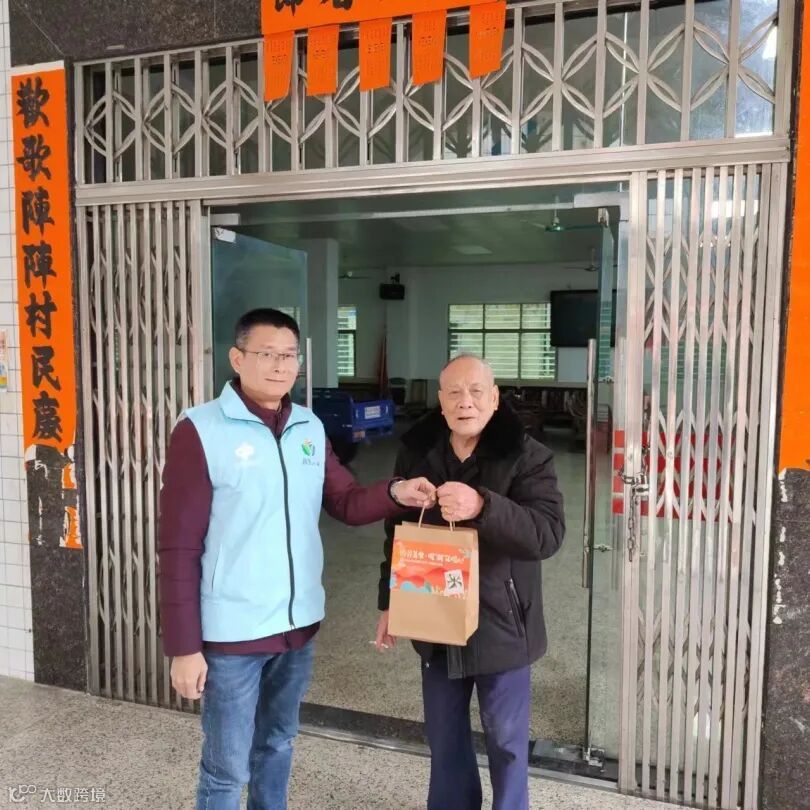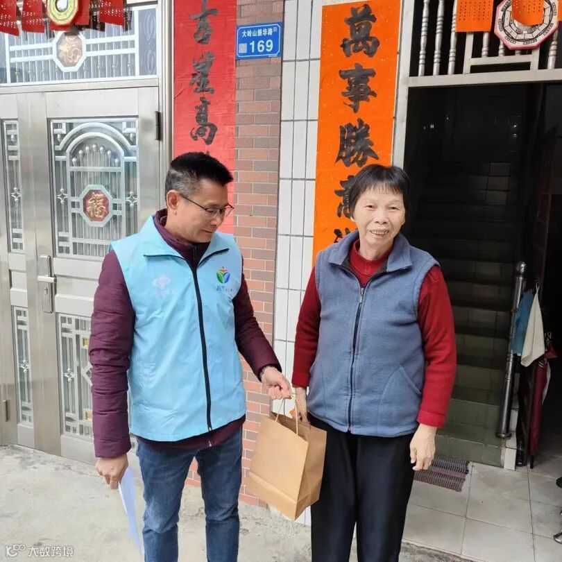 农场社区新时代文明实践站志愿者带着刚刚出炉的萝卜粄来到农场社区80岁以上户籍老人家中走访慰问,为他们送去节日的祝福,叮嘱他们在寒冷天气里要注意保暖,并为他们讲解了“百千万工程”的重大意义。
