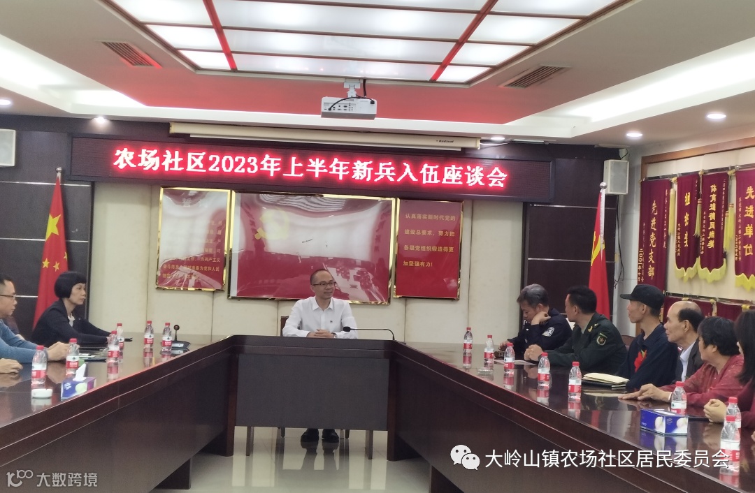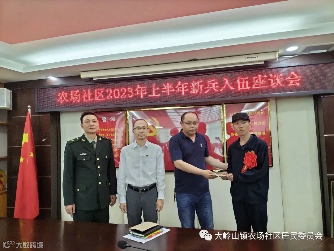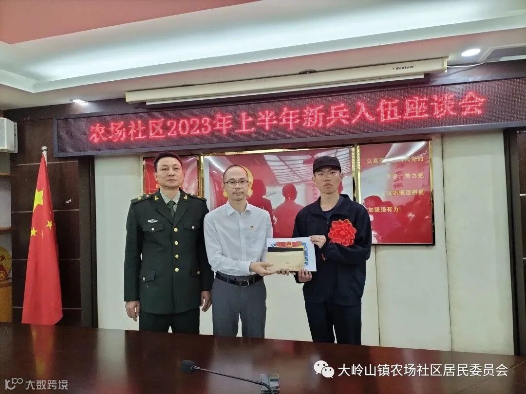 3月10日,农场社区举行了2023年上半年新兵入伍座谈会暨欢送仪式,新兵身着军装,佩戴大红花,怀揣着卫国戍边的远大志向,奔赴绿色军营。农场社区的“两委”干部、新兵家属朋友及部分村民参加欢送会。