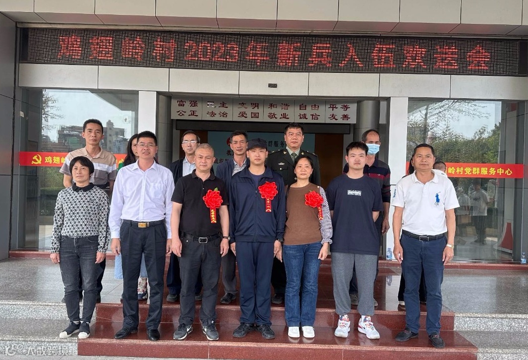 3月10日下午,在村委会大楼前,我村为优秀青年汤嘉贤举行入伍欢送仪式,鸡翅岭村党总支部书记汤伟伦、“两委”干部、分社长、新兵家属朋友以及众多热心村民参加了欢送活动。整个欢送活动锣鼓喧天、舞狮腾飞,气氛热闹。