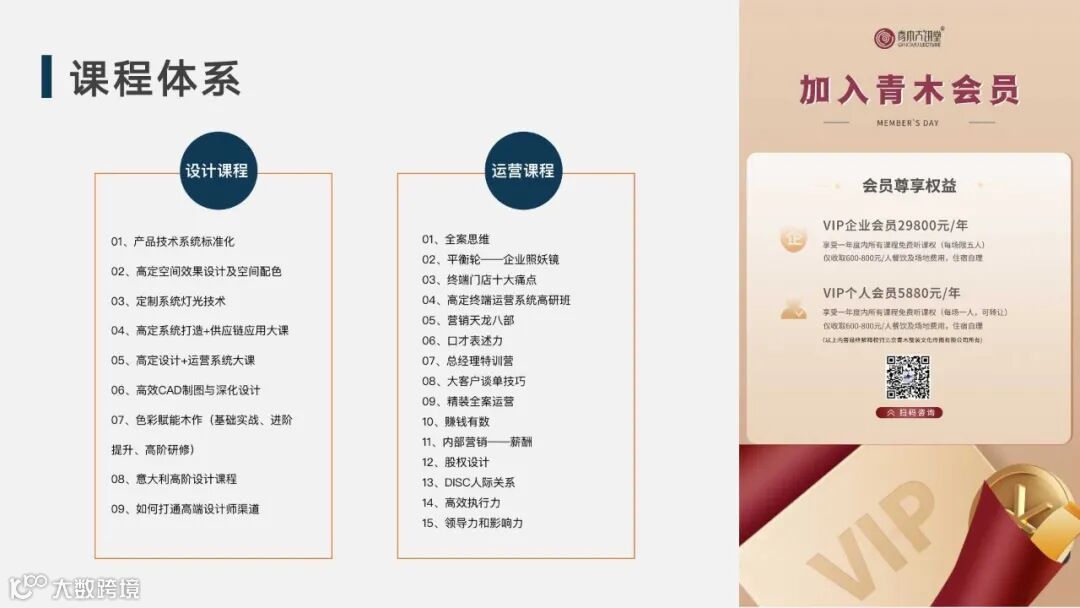 青木保证,在来年一定会继续用最专业的视角和最诚挚的初心,研发出更多更落地内容更多元的设计、技术、营销培训课程,持续赋能设计师、经销商和高定企业,青木的愿景是成为世界级实效商学院,青木的使命是让中国乃至世界家居企业持续增长、迈向伟大!让我们一路同行,明年再见!