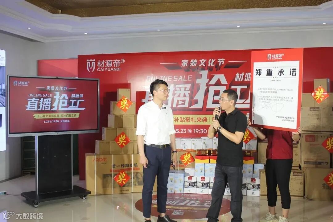 在直播开始之前,材源帝董事长黄总亲临现场,在直播间数万粉丝的共同见证下,针对本次活动向广大业主郑重承诺:在活动中所有直播产品都为厂家正品,可以享受全国专卖店的金牌服务;本次活动所售产品,价格为全年最低价,保价一年。就像黄总说的,本次活动,材源帝只做品牌和口碑,业主买的高兴就是这次活动最大的成功!