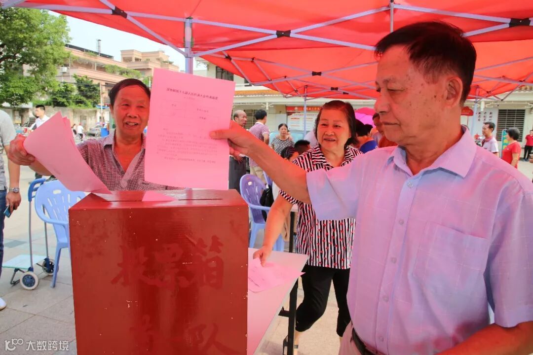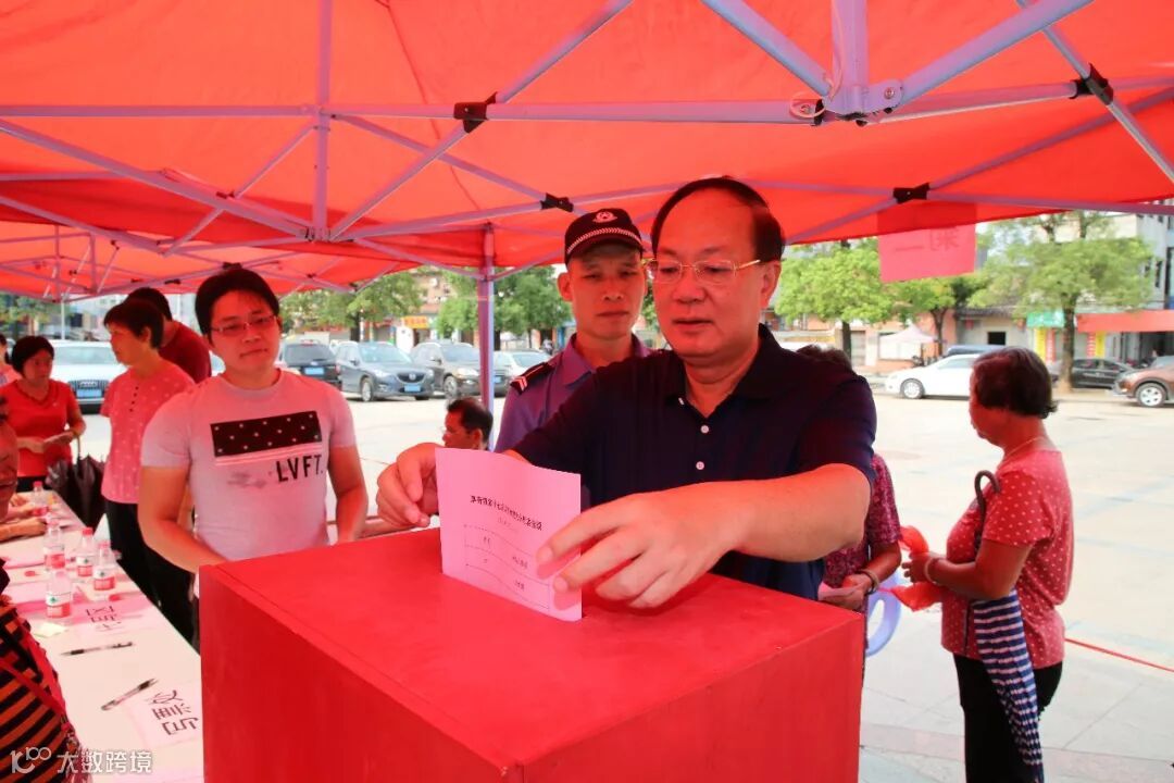 镇委书记刘学聪来到选举现场,以选民的身份参加了投票选举。