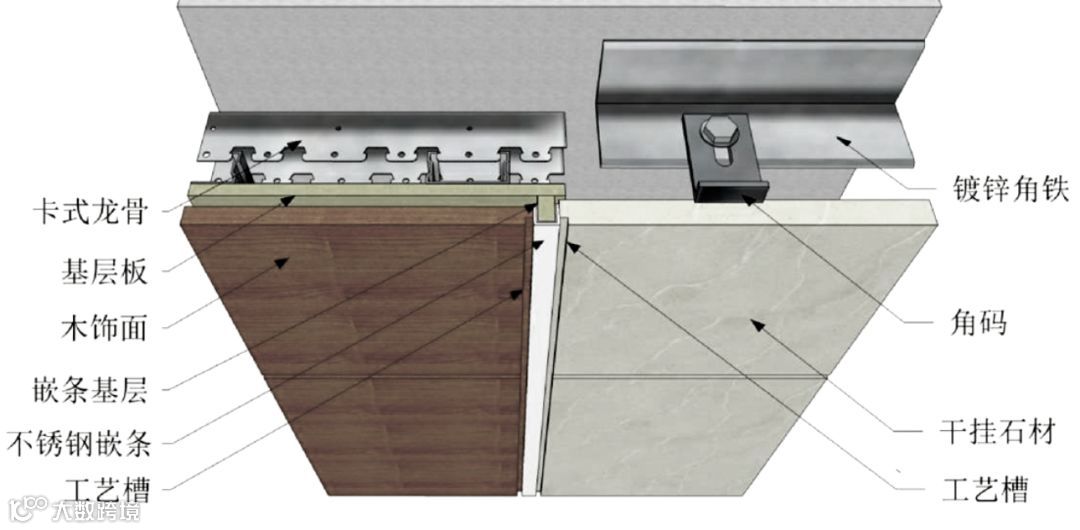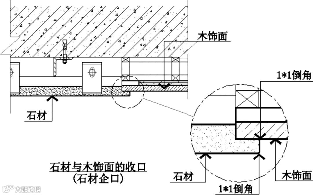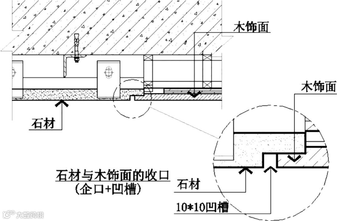 木饰面与石材错缝收口▲