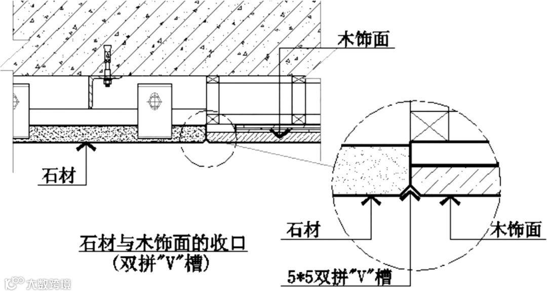 木饰面与石材留缝收口▲