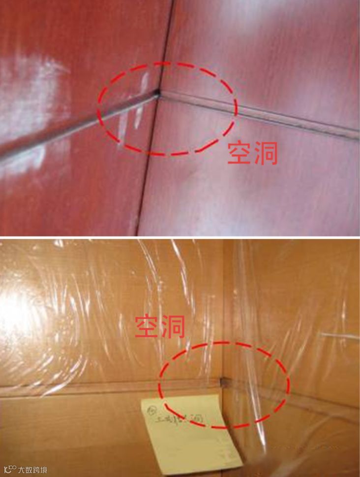 木饰面收缩导致阴角工艺缝处收缩出现空洞▲