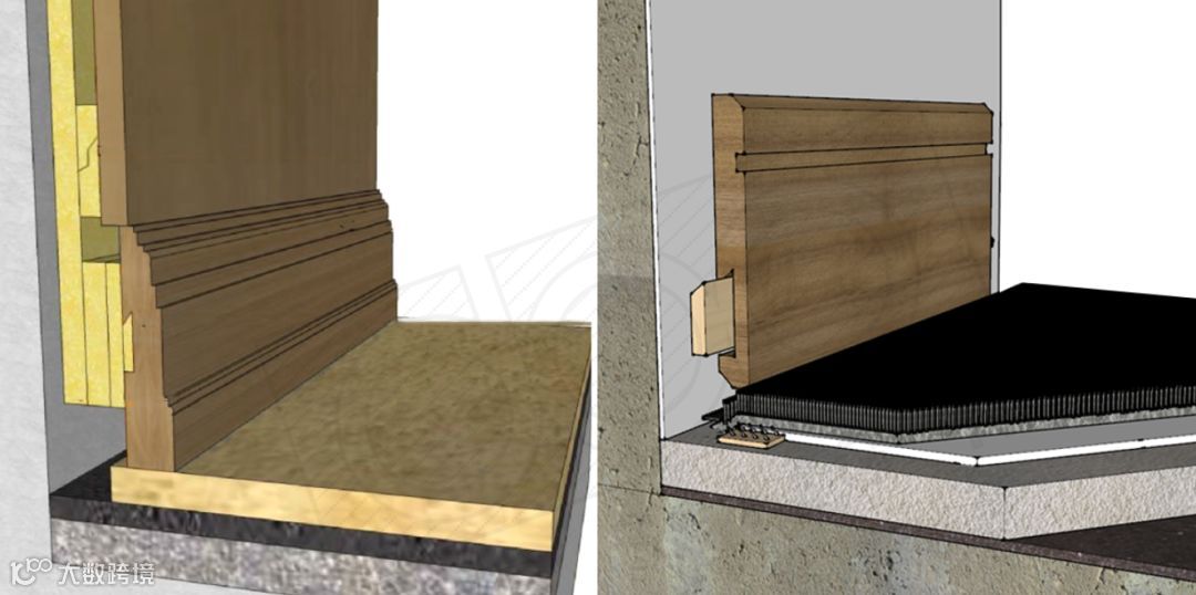 但是,往往大多数设计师对踢脚线的认识也仅仅只停留在这一步而已。所以发生了下面这样的情况: