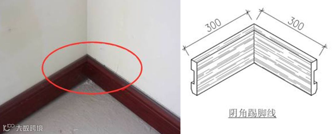 踢脚线阴角45°斜拼▲