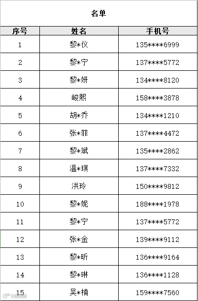 名单公布