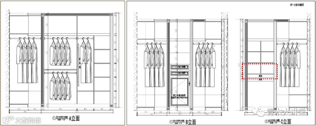 衣帽间的设计是很多木门,楼梯、橱柜及工装系统企业转型过来的设计师的难点,这个需要长时间的去积累,去分析客户类型及客户喜好,比如,客户的长短衣比例是接近1:2还是1:3,这样就好设计长衣区和短衣区的数量了,还有需要关注的是客户是否有保险箱或密码抽等特殊需求。
