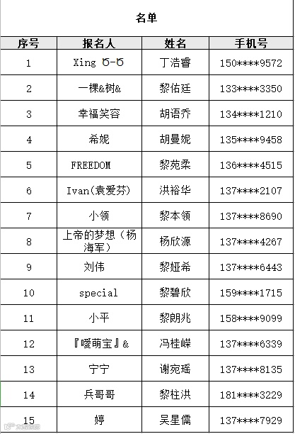 以上是报名成功潢涌村“一书一签,共阅美好”亲子阅读手工活动的参加者名单,活动时间为2025年4月22日(周二)晚上19:00—20:30,请参加者提前10分钟到潢涌村城市阅读驿站签到,谢谢!