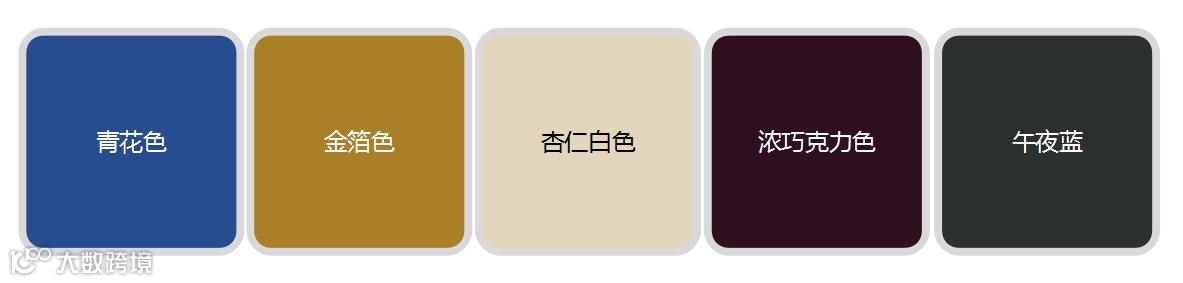 色彩定位:以简约、不花哨的大地色系为主,如木本色、黑棕色、棕褐色、浅檀色等,青、赤、黄、黑、白是中式文化的传统五色,使用中国红、金黄色、蓝色作为点缀色能够增添中式的高雅与优美。