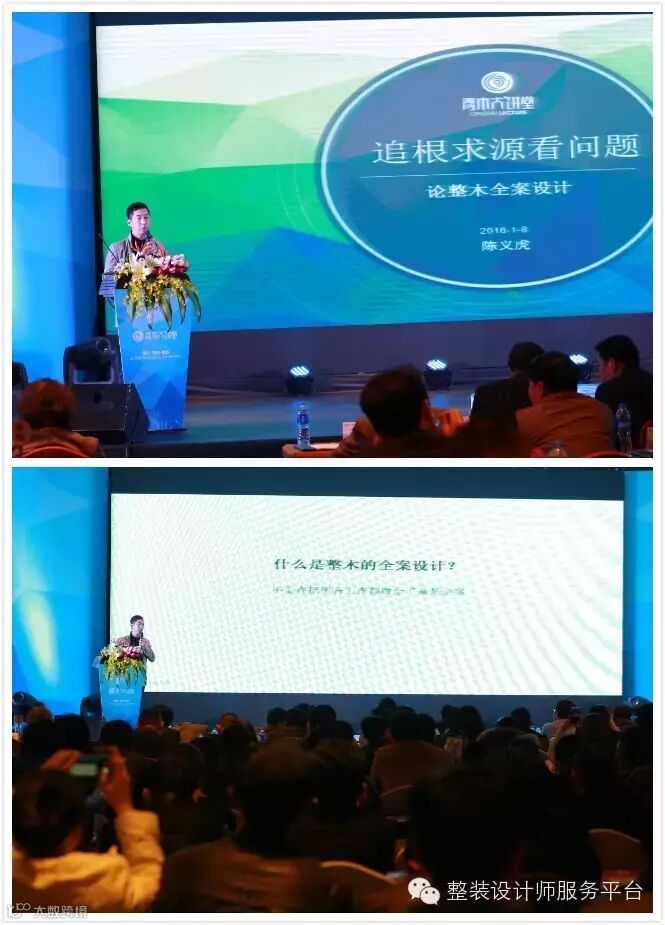 现场编辑 :整木行业的发展,少不了企业家们、经销商们、供应商们的努力,更少不了设计师的存在。设计成就产业未来,今天的峰会现场,青木大讲堂高级讲师,木作工艺研发设计师陈义虎先生为参会的众人带来《追根溯源找设计问题——论木作全案设计》讲座。陈老师倡导从全方位的全案设计出发,整合全部资源,促成方案的完美。精彩的演讲和丰富的内容,充分吸引了台下的目光,聚焦全场。