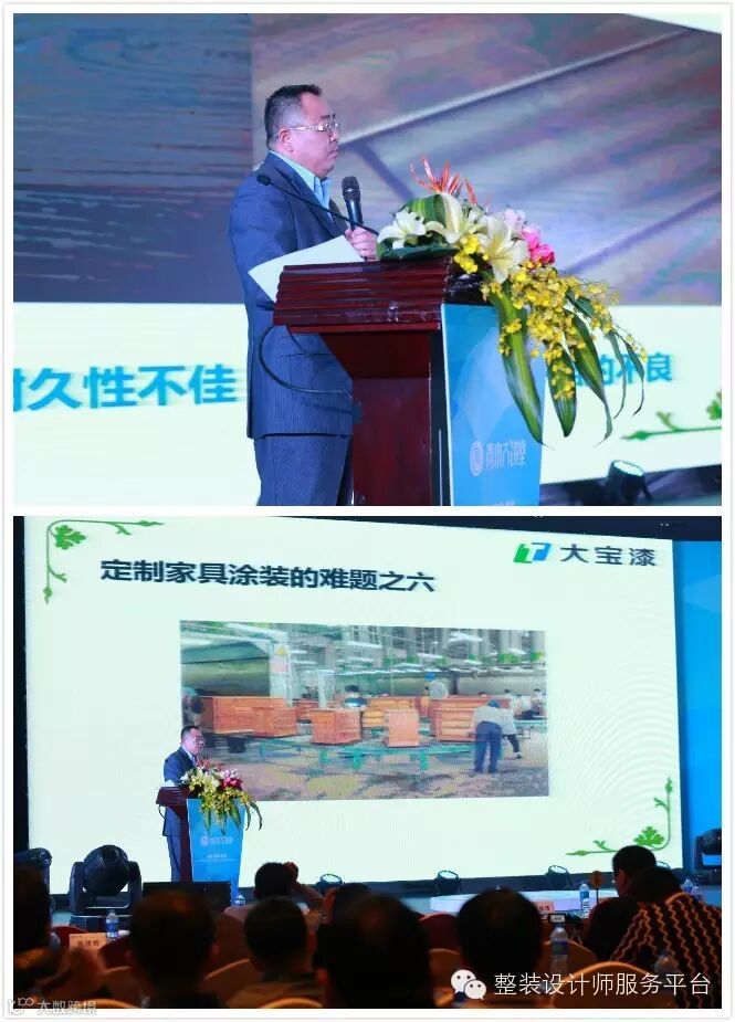 现场编辑 :大宝漆黄校长针对业内对漆面处理上的各项问题提出相关解决方案,并承诺为整木行业与企业长期进行漆面工艺的处理方案指导。黄校长充满实战性的问题观点与解决办法,获得了现场企业家们的阵阵掌声。