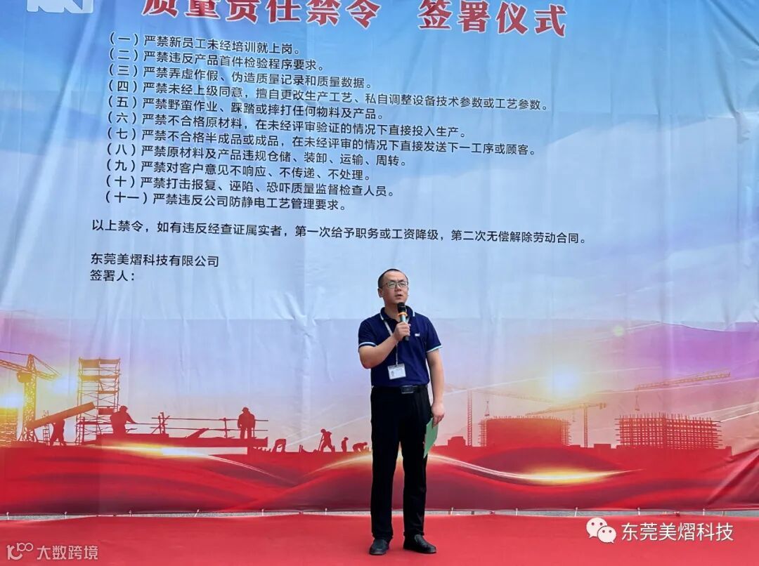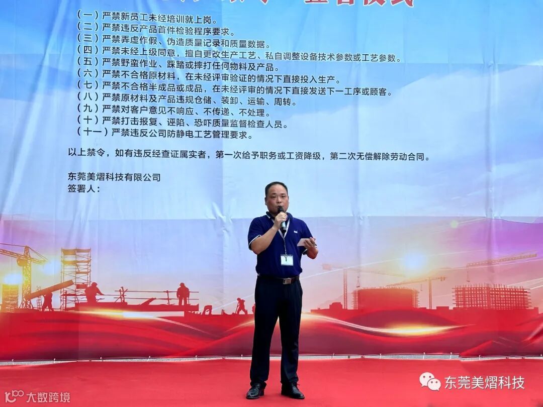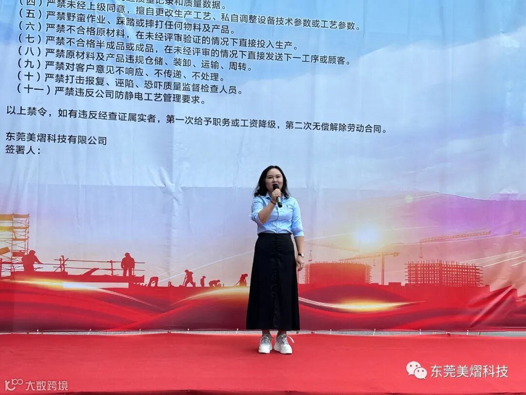 庄总表示品质是企业生存的根本,企业要想发展壮大,必须将品质摆在第一位,而员工是守好产品品质的第一条线。我们要始终秉持精益求精的态度,强抓质量管理,做好过程监督,不忽略每一道工序、不放过每一个细节,提高品质标准,对产品缺陷零容忍。产品如人品,我们要对自己生产的产品负责,对客户负责。全员参与品质行动,推动质量管理的全面落实,不断提升我们的竞争力。
