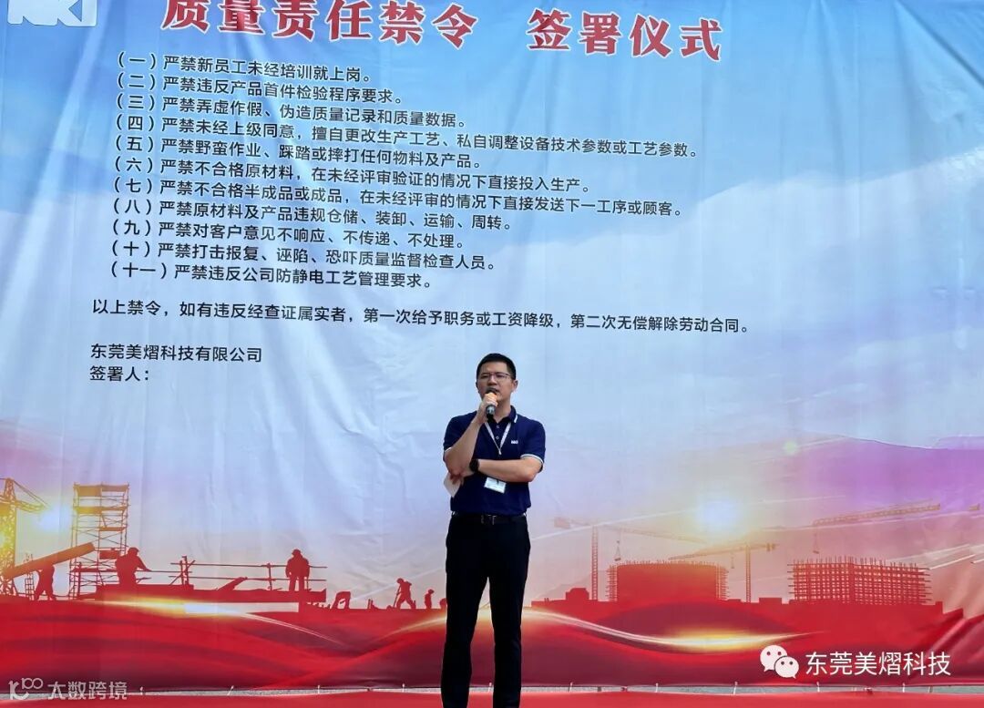 随后,各部门员工代表在质量责任禁令上签名,展现了公司全体对全面提升公司产品质量的态度和决心。