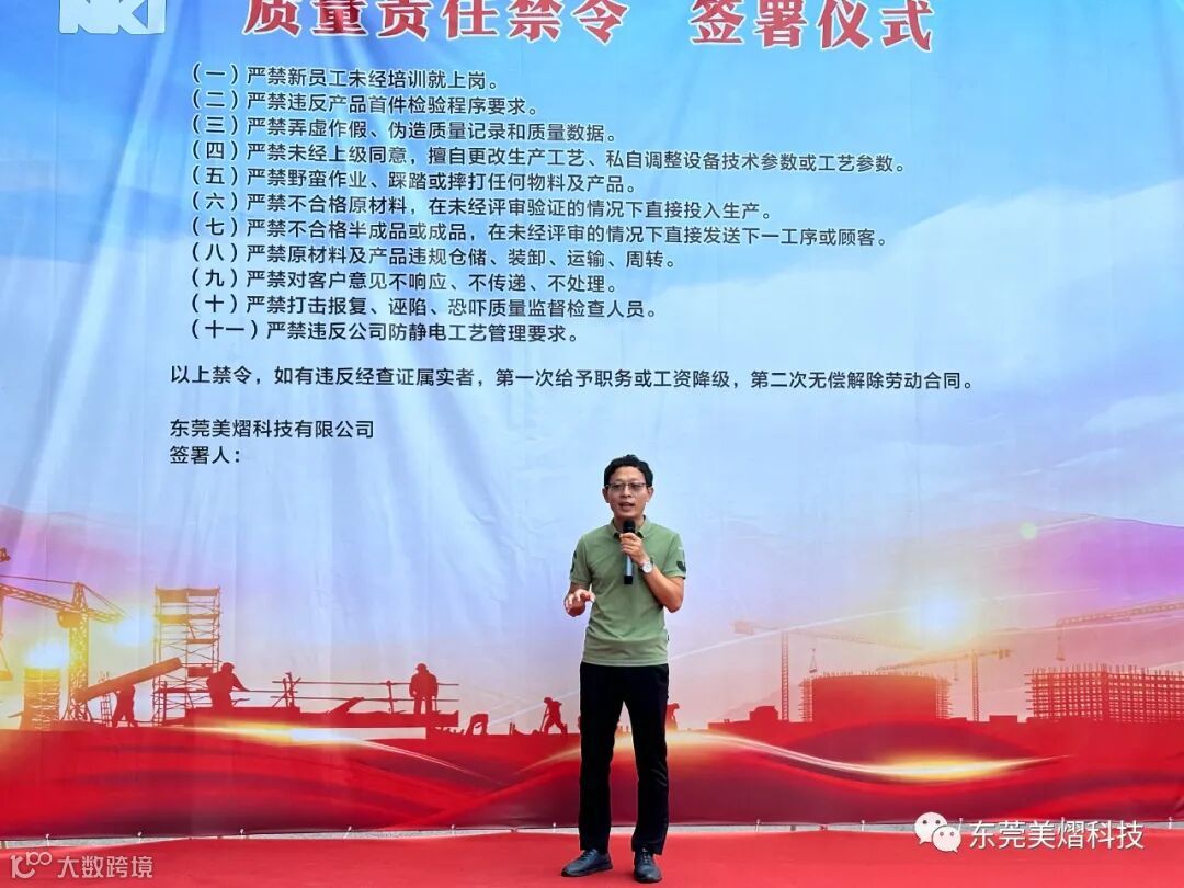 品质的改善同样也离不开客户的支持和监督,本次动员大会特别邀请了石头科技制造交付部总监周总上台讲话。周总对东莞美熠的努力表示了肯定,同时也提醒我们要不断提高产品质量和服务水平,也相信在大家的努力下,东莞美熠一定会迈上一个新台阶。