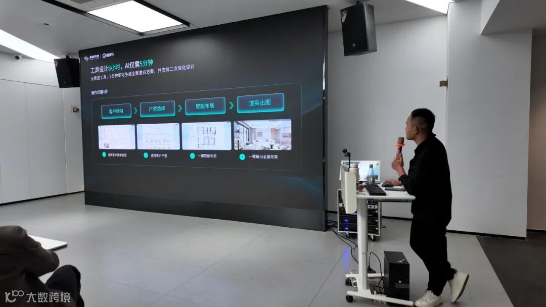 回到多功能厅,负责人陈来发带来了酷家乐AI设计×门墙柜一体化的现场演示。