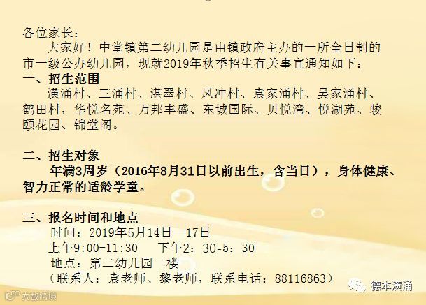 @各位家长,中堂镇第二幼儿园2019年秋季招生计划,留意报名时间和地点