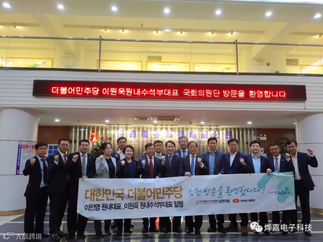 2019年11月8日,韩国执政党_共同民主党国会院内首席副主席 Lee wonwook议员为代表的6位国会议员和韩国驻中国大使馆及广州总领馆领事一行参观烨嘉集团。