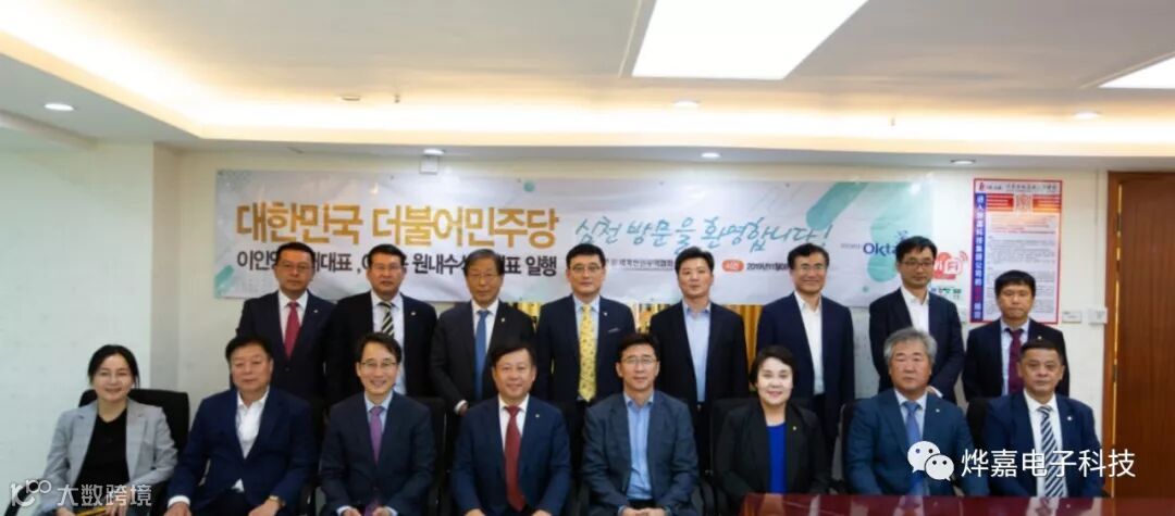 韩国执政党_共同民主党国会院内首席副主席 Lee wonwook议员为代表的6位国会议员和韩国驻中国大使馆及广州总领馆领事一行合影