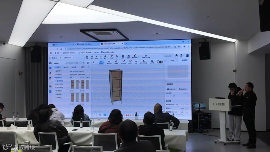 顾信家居张何斌进行酷家乐定制应用解析,展示了如何快速搭建产品,顾信家居设计、技术、工艺三维一体,酷家乐、WCC、FMS一键打通,德国豪迈设备接收WCC生产软件加工指令保证每个板件和孔位准确无误。体现数字化设计与定制服务方面的高效性与便捷性,能够满足消费者个性化的需求。