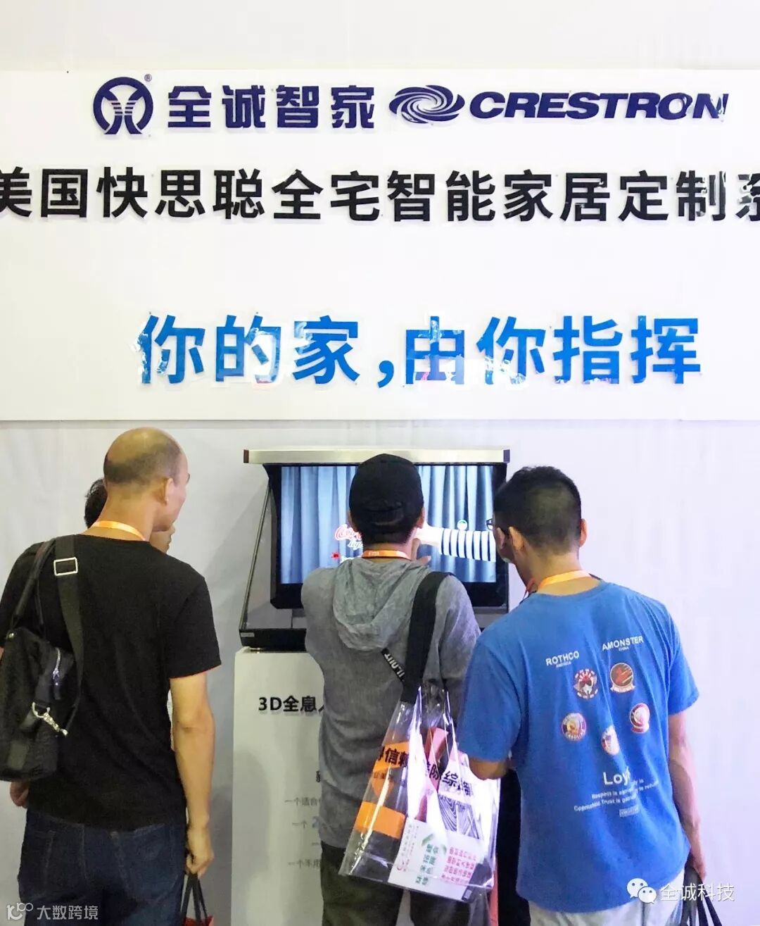 工作人员认真为参展者演示及介绍智能家居系统,展位人群络绎不绝